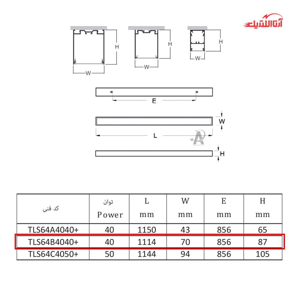 چراغ خطی روکار 40 وات تولید نور مدل پارکولایت پلاس کد TLS64B4040+