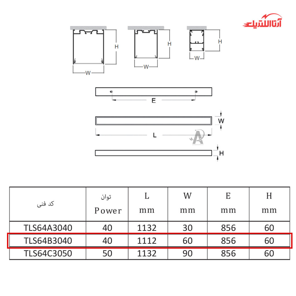 بررسی چراغ خطی توکار 40 وات تولید نور مدل پارکولایت کد TLS64B3040