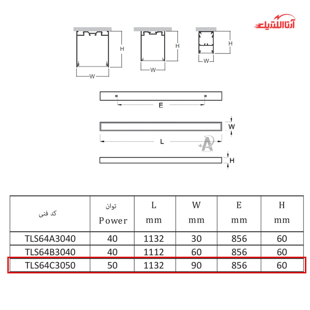 بررسی چراغ خطی توکار 50 وات تولید نور مدل پارکولایت کد TLS64C3050