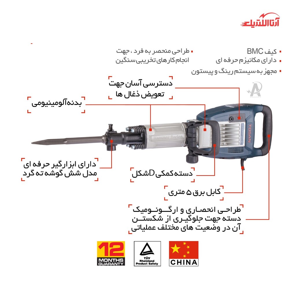 معرفی چکش تخریب 1900 وات 16 کیلویی توسن مدل 6016DH