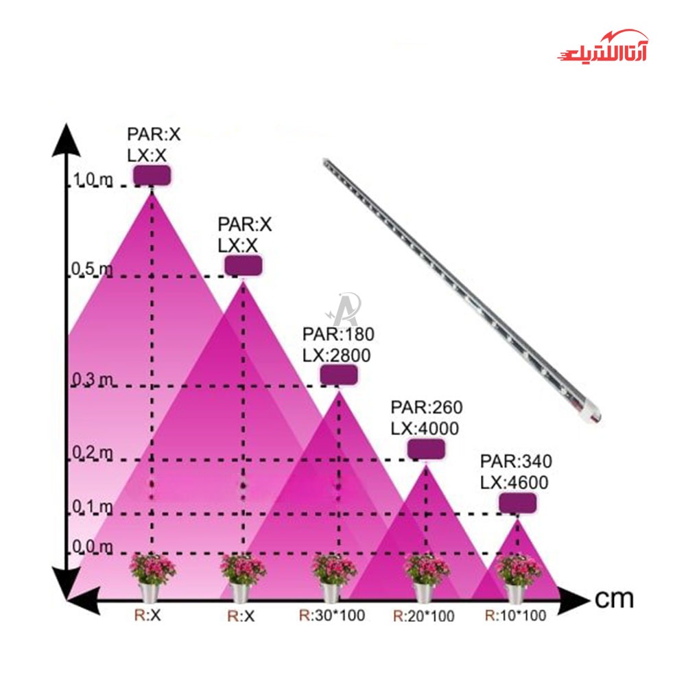 وال واشر مخصوص رشد گیاه 24 وات با نوردهی 67.5 لومن بر وات که در مجموع 1620 لومن نور در طیف 400 تا 700 نانومتر با ترکیبی از 4000 تا 5000 کلوین با طول عمر 50 هزار ساعت است. در تولید این چراغ از بهترین مارک‌های نوع LED از رنگ نورهای قرمز و آبی ساخته شده تا بهترین بهره‌نوری را ساطع کند. سطح تحت پوشش چراغ 110X25 سانتیمتر مربع است و برای نصب باید فاصله را از تاج گل محاسبه کرد که معمولا ارتفاع نصب با توجه به تعداد گیاه از 20 تا 25 سانتیمتر در نظر گرفته می‌شود. محصولات رشد گیاه دارای درجه حفاظت IP برای جلوگیری از نفوذ رطوبت و گردوخاک و با استاندارد IR تولید میٰ‌شوند که نشان از عدم تولید گرماست که برای گیاه مضرر است